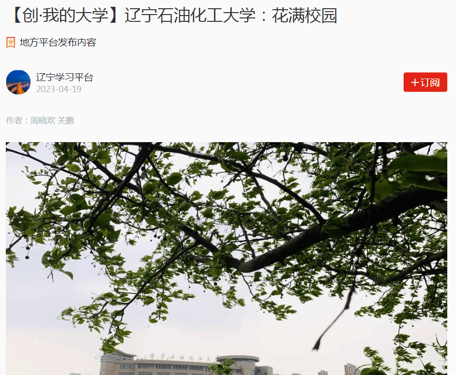 编者按:近日,学习强国辽宁学习平台、人民日报客户端·人民号等媒体平台对我校春季美景以图集形式进行了宣传报道。现将相关报道转载如下: