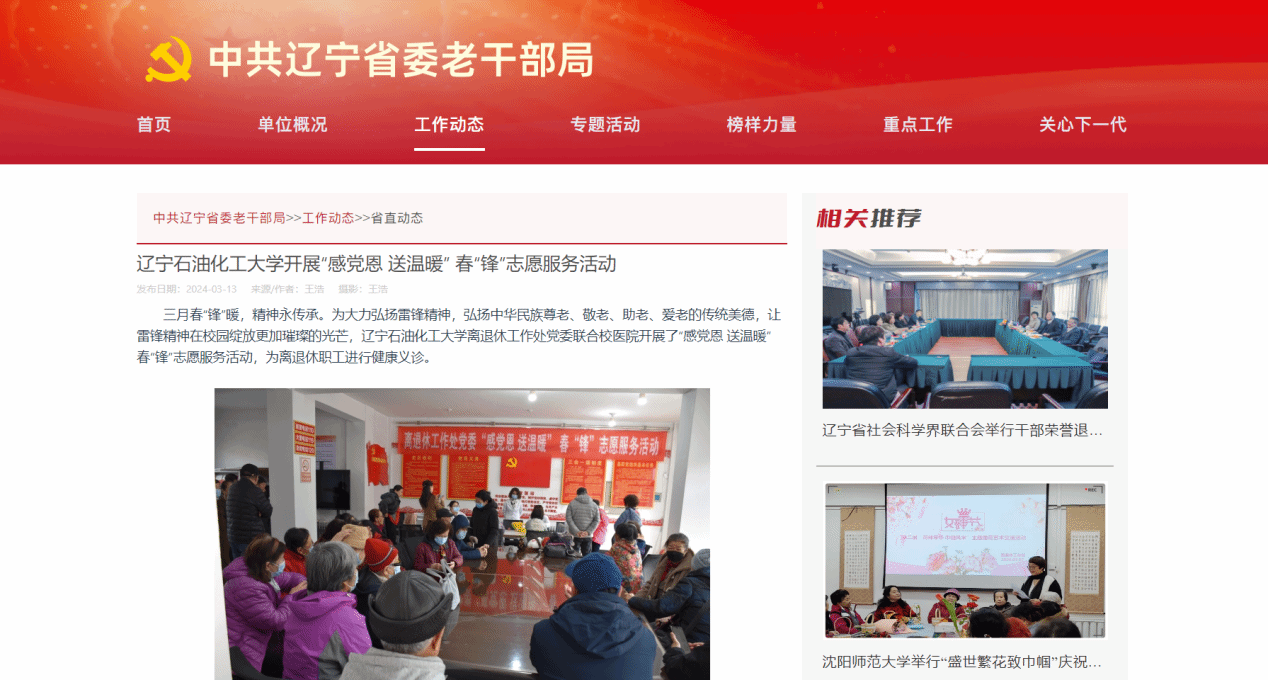 编者按:近日,中共辽宁省委老干部局官网、辽宁日报·辽望号、人民日报客户端·人民号、中国大学生网登载了我校离退休工作处撰写的文章《国产亚洲综合一区二区三区_亚洲欧美日韩中文天堂_尤物在线观看视频不卡无码_国产最新精品亚洲2025不卡_亚洲成Av人在线观看片水蜜桃开展“感党恩 送温暖” 春“锋”志愿服务活动》。现将相关报道转载如下: