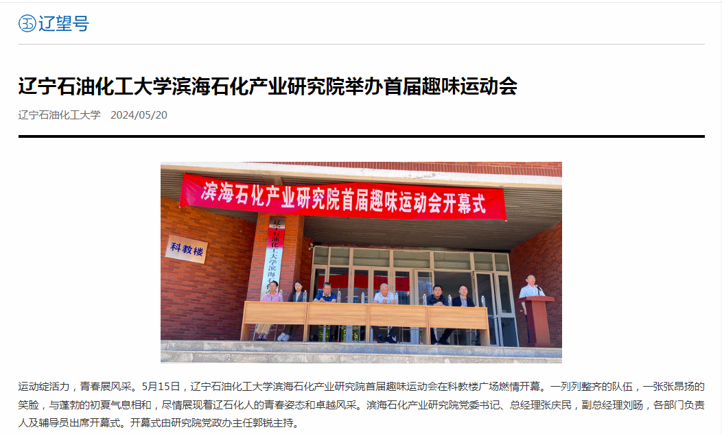 编者按:近日,中国大学生网、人民日报客户端·人民号、辽宁日报·辽望号对我校滨海石化产业研究院举办首届趣味运动会进行了宣传报道。现将相关报道转载如下: