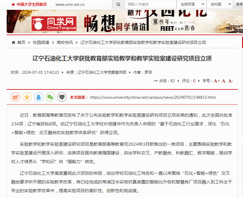 编者按:7月1日,中国大学生网、辽宁日报·辽望号、搜狐号、人民日报客户端·人民号对我校获批教育部实验教学和教学实验室建设研究项目立项进行了宣传报道。现将相关报道转载如下: