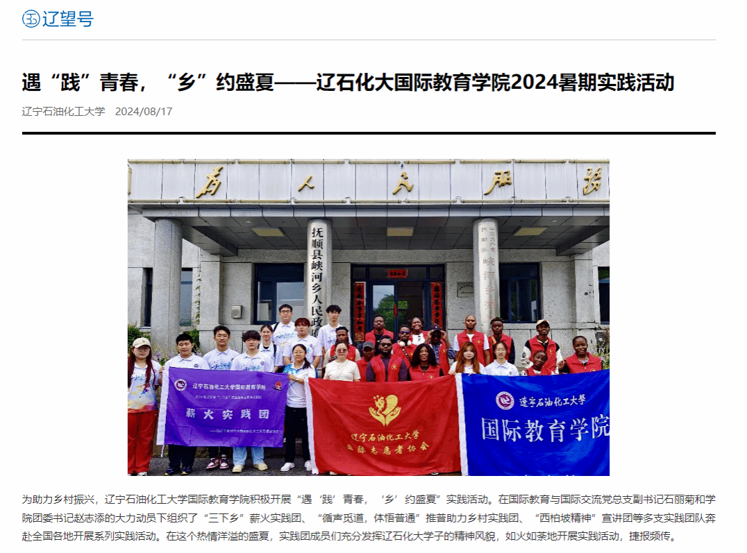 辽宁日报•辽望号:遇“践”青春,“乡”约盛夏——辽石化大国际教育学院2024暑期实践活动