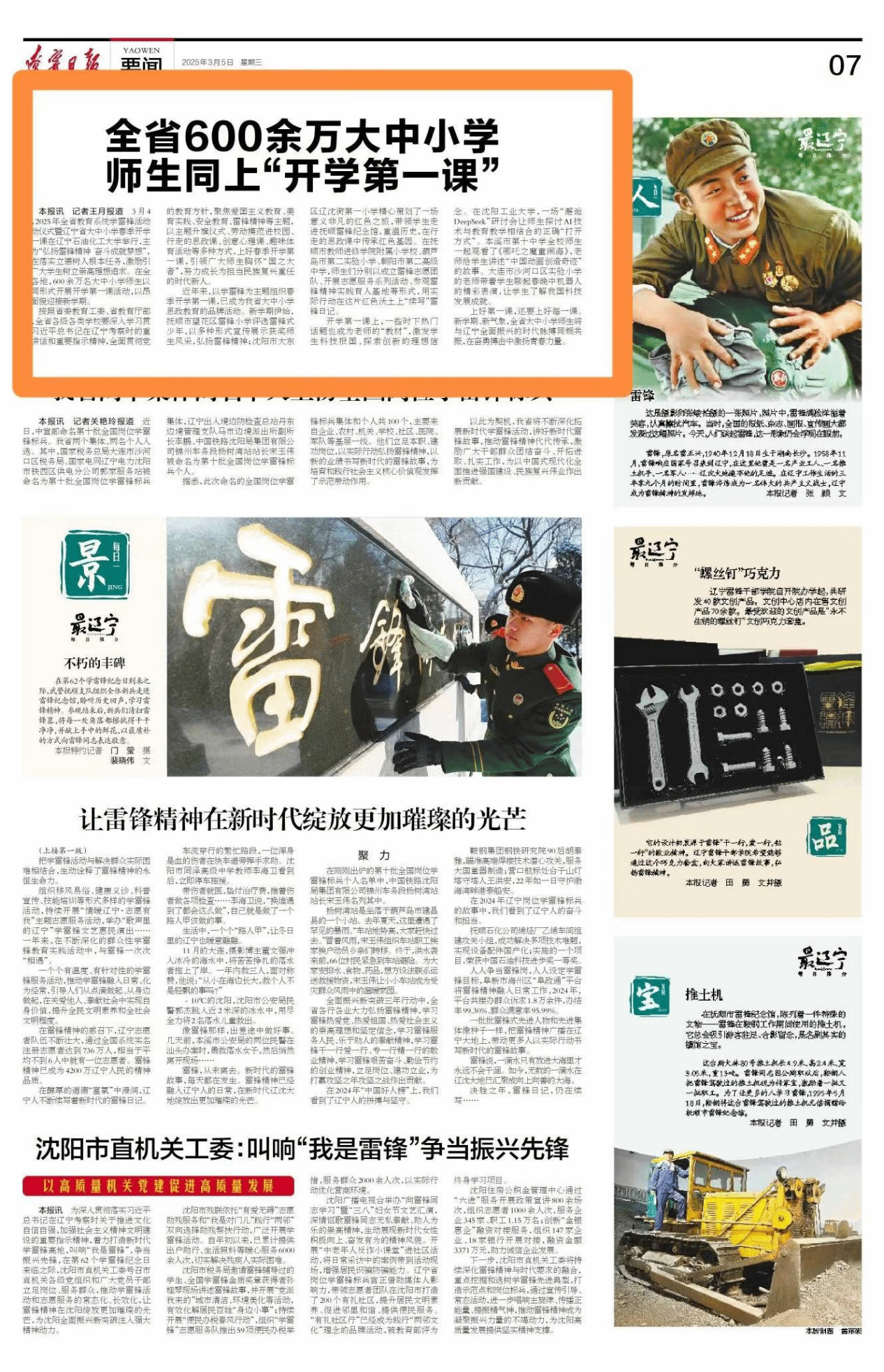 编者按:3月4日,“弘扬雷锋精神,奋斗成就梦想”2025年全省教育系统学雷锋活动启动仪式、暨辽宁省大中小学春季开学第一课活动在国产亚洲综合一区二区三区_亚洲欧美日韩中文天堂_尤物在线观看视频不卡无码_国产最新精品亚洲2025不卡_亚洲成Av人在线观看片水蜜桃正式启动。此次的开学第一课围绕着讲雷锋、学雷锋、做雷锋,让师生共同感受雷锋的平凡与伟大。辽宁新闻、辽宁日报、辽宁省教育厅微信公众号、辽宁高校思政微信公众号、辽望·辽宁日报、人民日报少年网、人民网、今日头条、腾讯新闻、北斗融媒、央视频等媒体平台全方位推广宣传。现将相关报道转载如下: