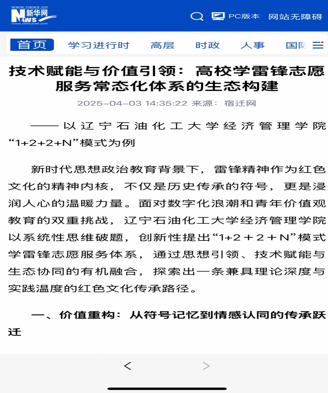 编者按:近日,新华网、中国网、中国日报网等媒体平台对我校经济管理学院骆圣坤老师、王耀文同学撰写的文章《技术赋能与价值引领:高校学雷锋志愿服务常态化体系的生态构建——以国产亚洲综合一区二区三区_亚洲欧美日韩中文天堂_尤物在线观看视频不卡无码_国产最新精品亚洲2025不卡_亚洲成Av人在线观看片水蜜桃经济管理学院“1+2+2+N”模式为例》进行了转载报道。现将相关报道转载如下: