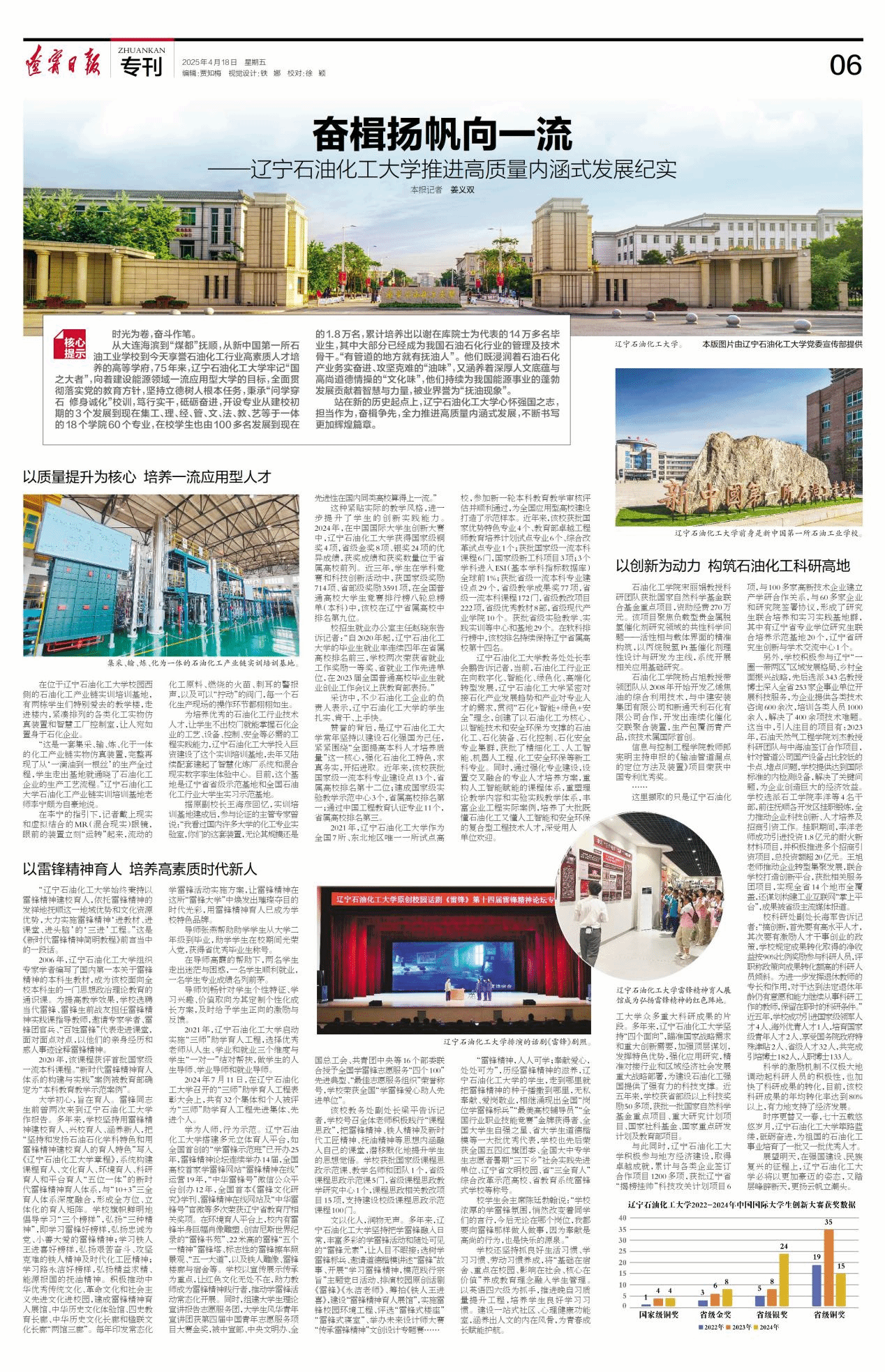 编者按:4月18日,辽宁日报第06版专版以《奋楫扬帆向一流——国产亚洲综合一区二区三区_亚洲欧美日韩中文天堂_尤物在线观看视频不卡无码_国产最新精品亚洲2025不卡_亚洲成Av人在线观看片水蜜桃推进高质量内涵式发展纪实》为题,对我校以质量提升为核心,培养一流应用型人才;以雷锋精神育人,培养高素质时代新人;以创新为动力 构筑石油化工科研高地;心怀强国之志,担当作为,奋楫争先,全力推进高质量内涵式发展进行了宣传报道。现将相关报道转载如下:
