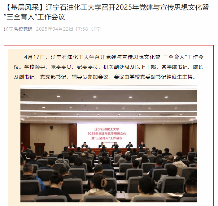 下一条: 辽宁高校党建微信公众号:【基层风采】辽宁高校召开2025年全面从严治党工作会议⑩