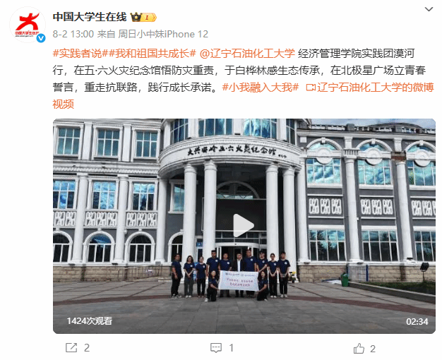 编者按:经济管理学院实践团漠河行,在五·六火灾纪念馆悟防灾重责,于白桦林感生态传承,在北极星广场立青春誓言,重走抗联路,践行成长承诺。教育部中国大学生在线官方微博对此进行了宣传报道。现将相关报道转载如下: