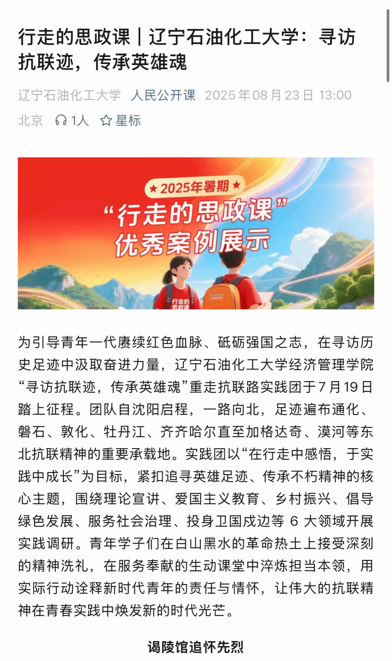编者按:为引导青年一代赓续红色血脉、砥砺强国之志,在寻访历史足迹中汲取奋进力量,国产亚洲综合一区二区三区_亚洲欧美日韩中文天堂_尤物在线观看视频不卡无码_国产最新精品亚洲2025不卡_亚洲成Av人在线观看片水蜜桃经济管理学院“寻访抗联迹,传承英雄魂”重走抗联路实践团于7月19日踏上征程。团队自沈阳启程,一路向北,足迹遍布通化、磐石、敦化、牡丹江、齐齐哈尔直至加格达奇、漠河等东北抗联精神的重要承载地。人民公开课微信公众号对此进行了宣传报道。现将相关报道转载如下: